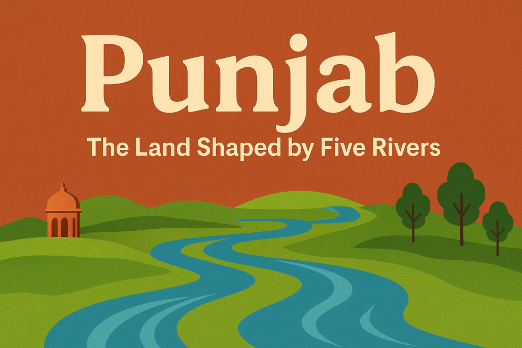 A land takes its name from the waters that shaped it. Punjab, from panj meaning five and aab meaning water, was once home to five great rivers — Sutlej, Beas, Ravi, Chenab, and Jhelum. These rivers carried silt from the mountains, spread it across the plains, and turned the soil golden. For centuries, they were more than just water; they nourished fields, villages, and traditions, making Punjab the breadbasket of India.
